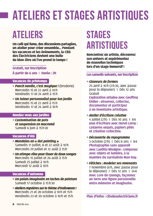 Cité des Électriciens – Programme Saison 2026 –