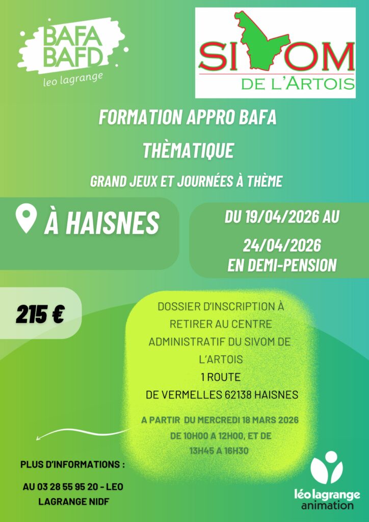 Organisation, inscription et informations auprès du SIVOM de l’Artois