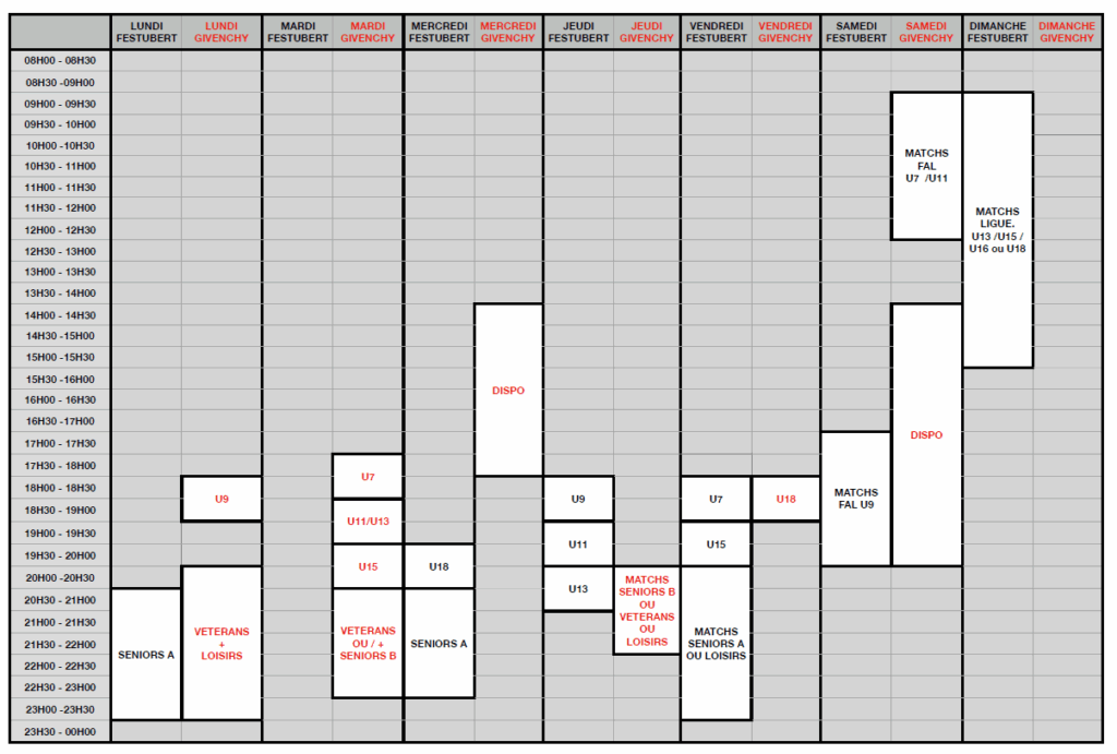 Match à Festubert le samedi de 17h30 à 20h ou le dimanche de 9h30 à 12h
