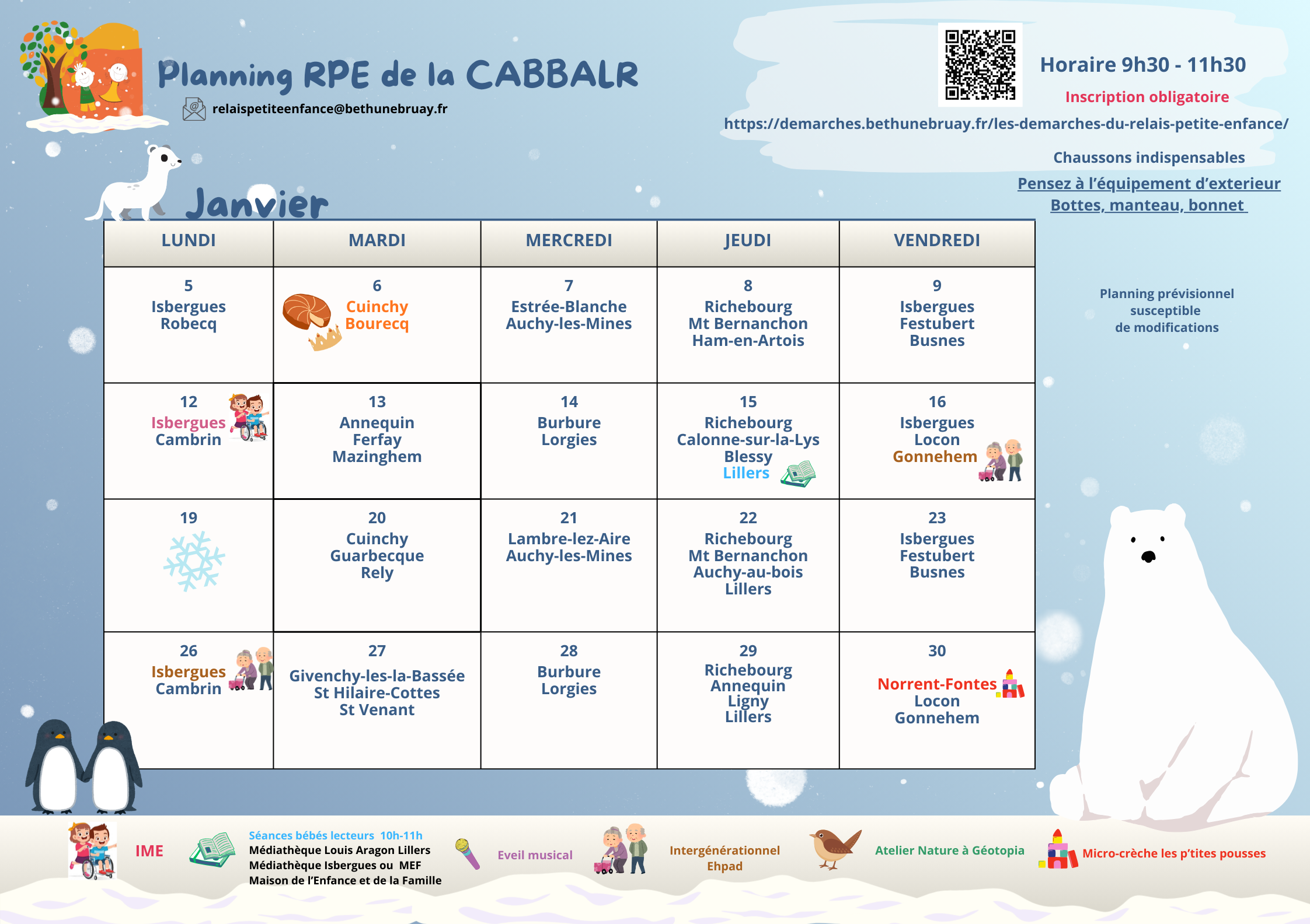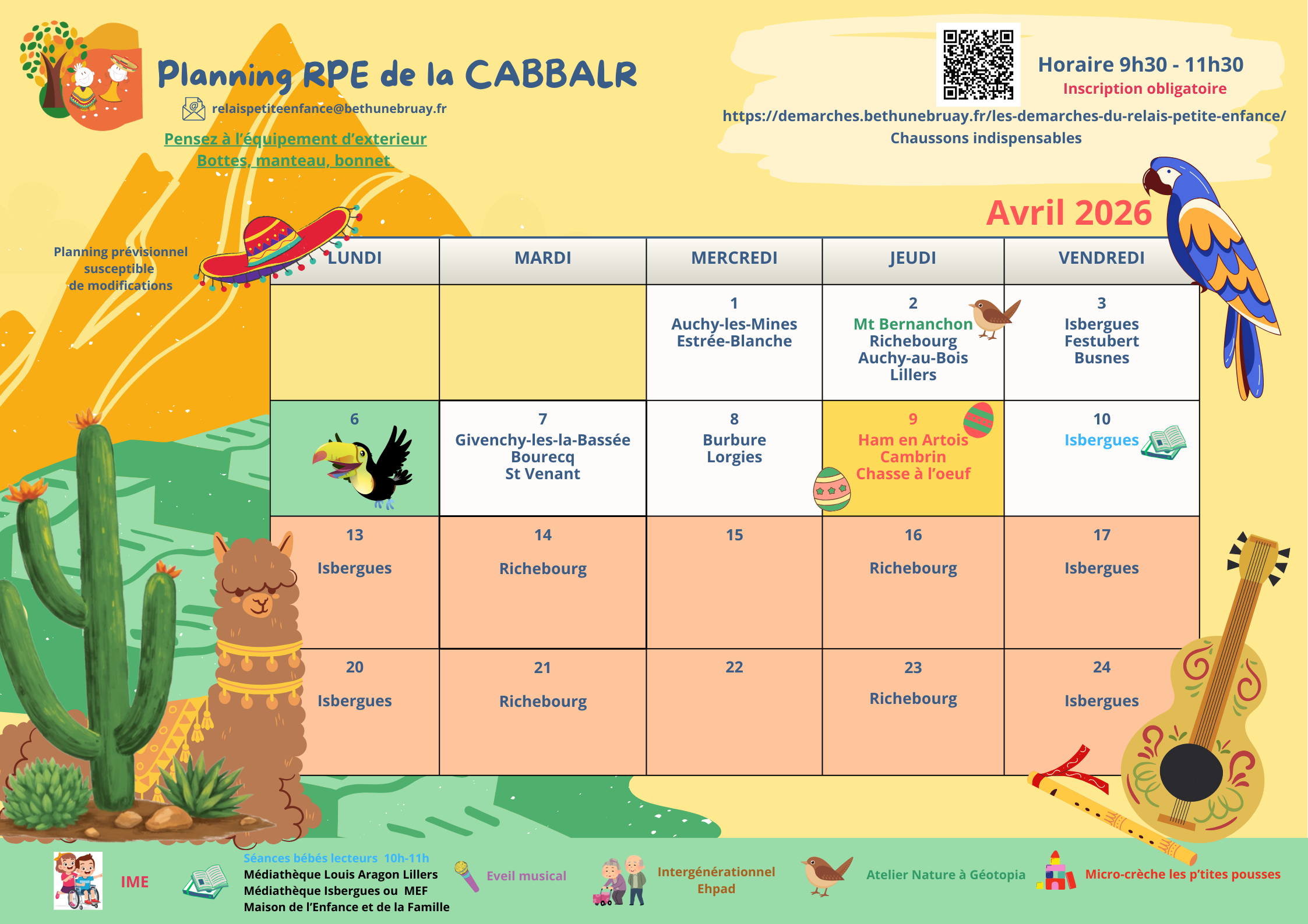 Les enfants, accompagnés de leurs parents, assistant maternel ou garde à domicile, sont invités à participer aux animations qui se déroulent de 9h45 à 11h15 (hors vacances scolaires) :